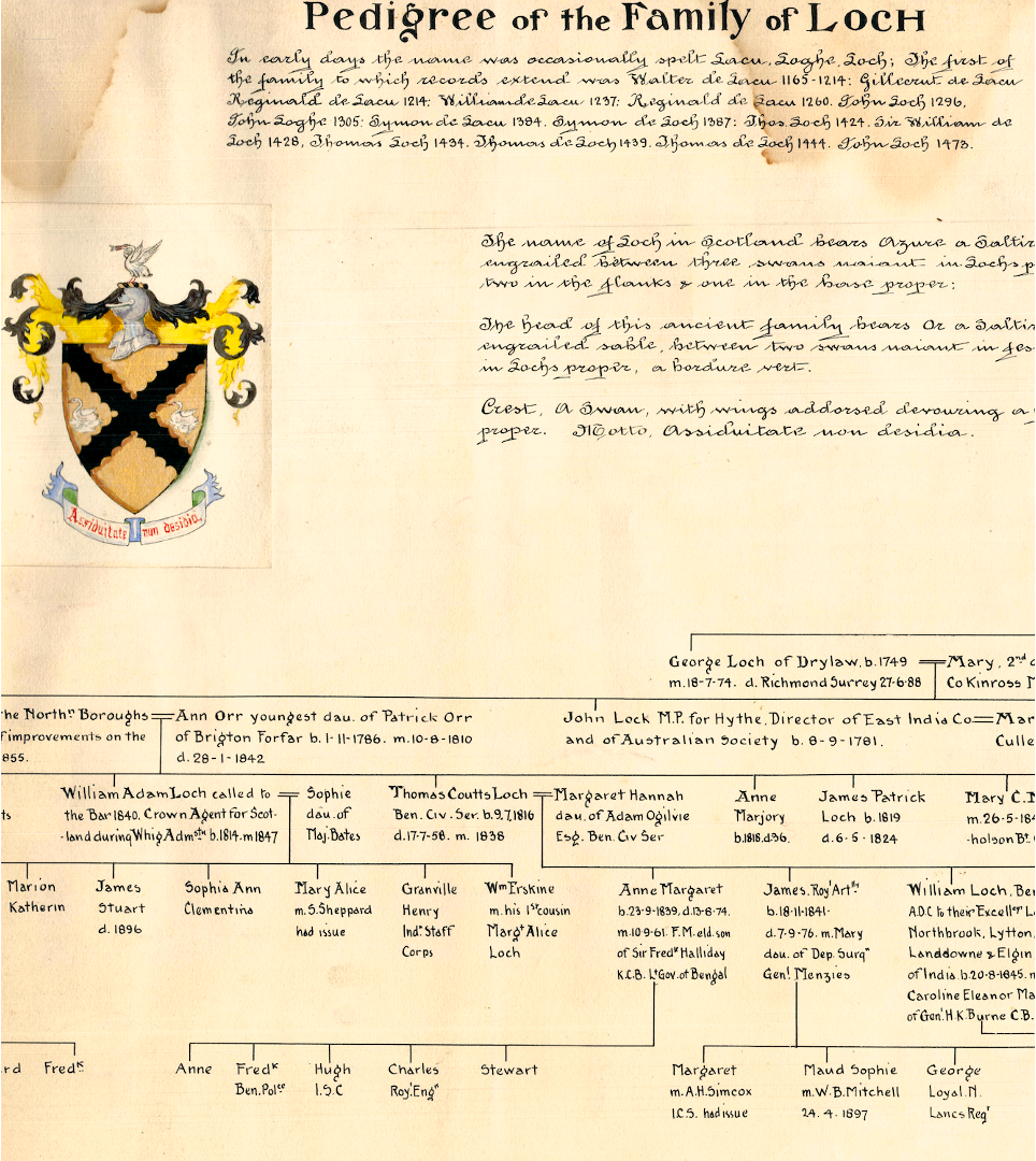 Finding the ‘Pedigree of the Family of Loch’ in 1968, and what was known of the family.
