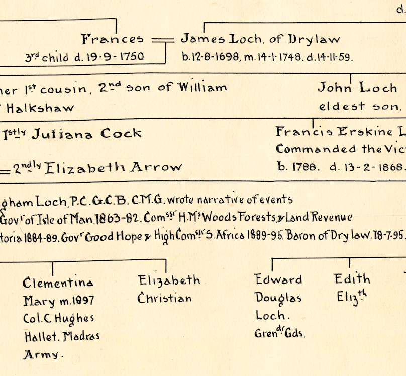 From James Loch of Drylaw and his wife Frances, daughter of William Erskine.